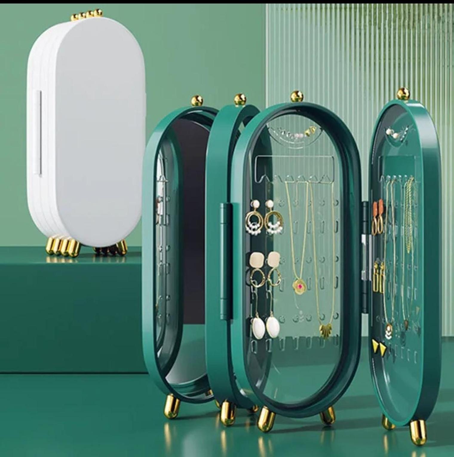 Unique foldable vintage-style jewelry display rack designed to organize and beautifully display necklaces, trinkets, and accessories while doubling as décor.