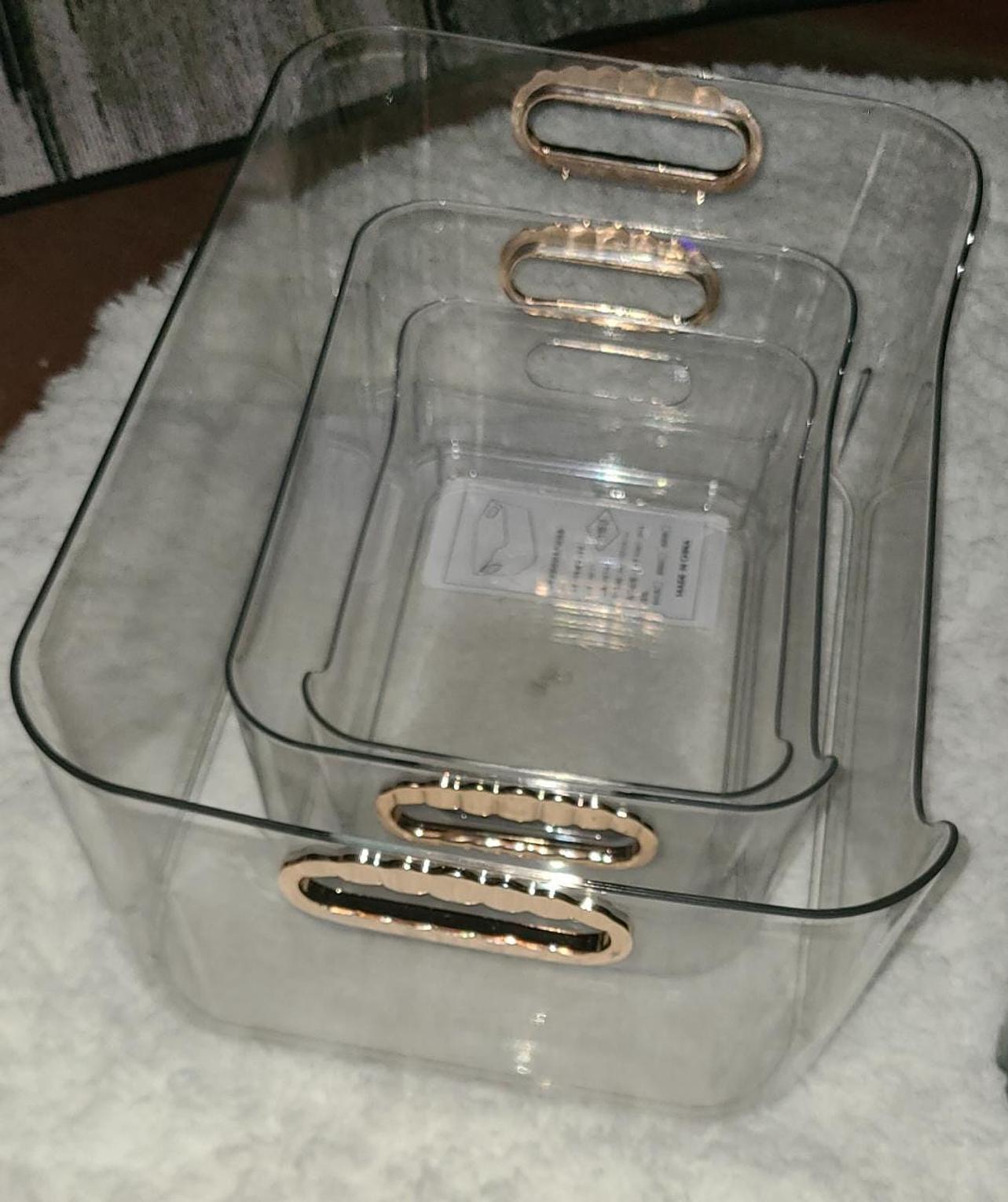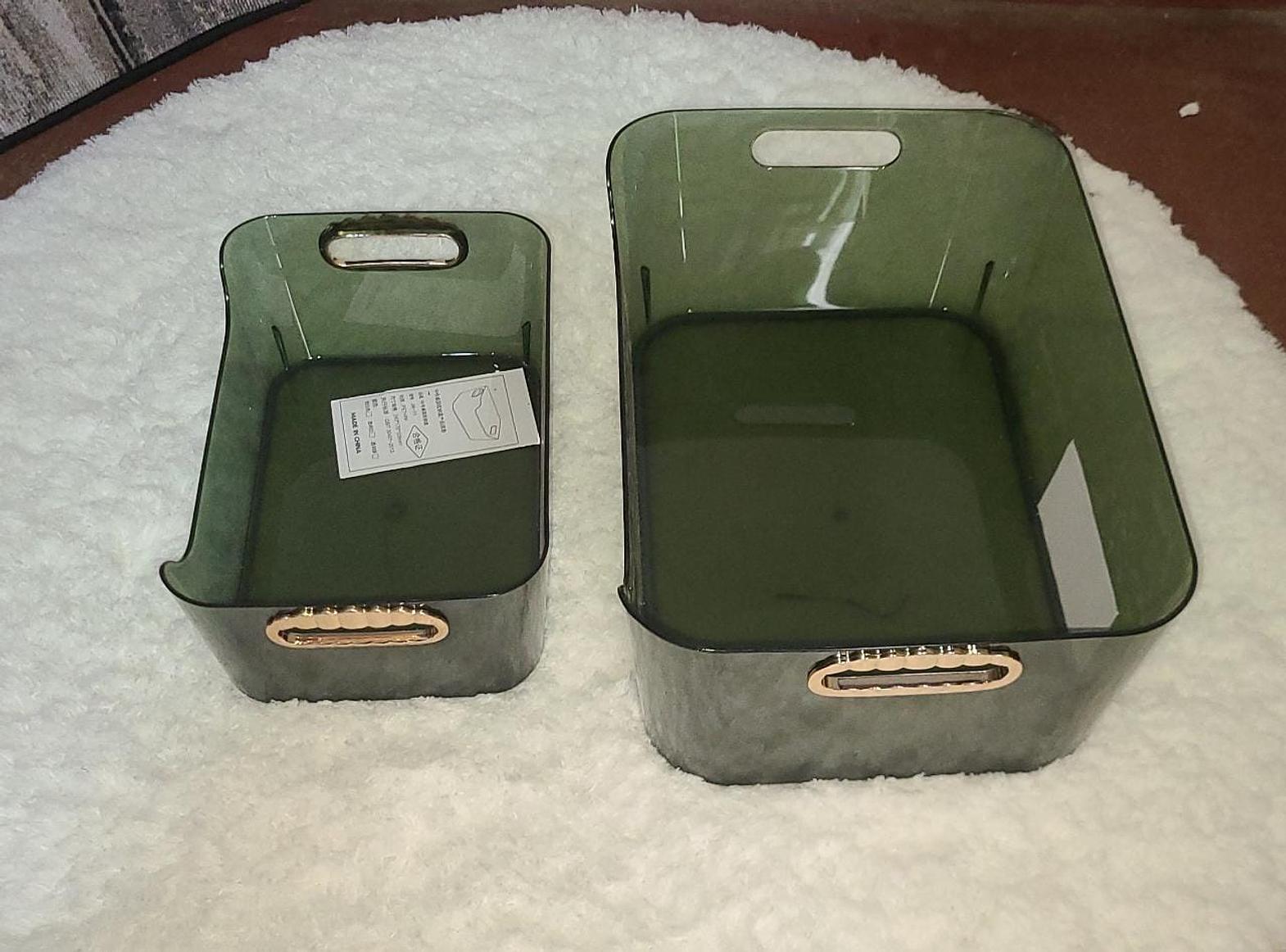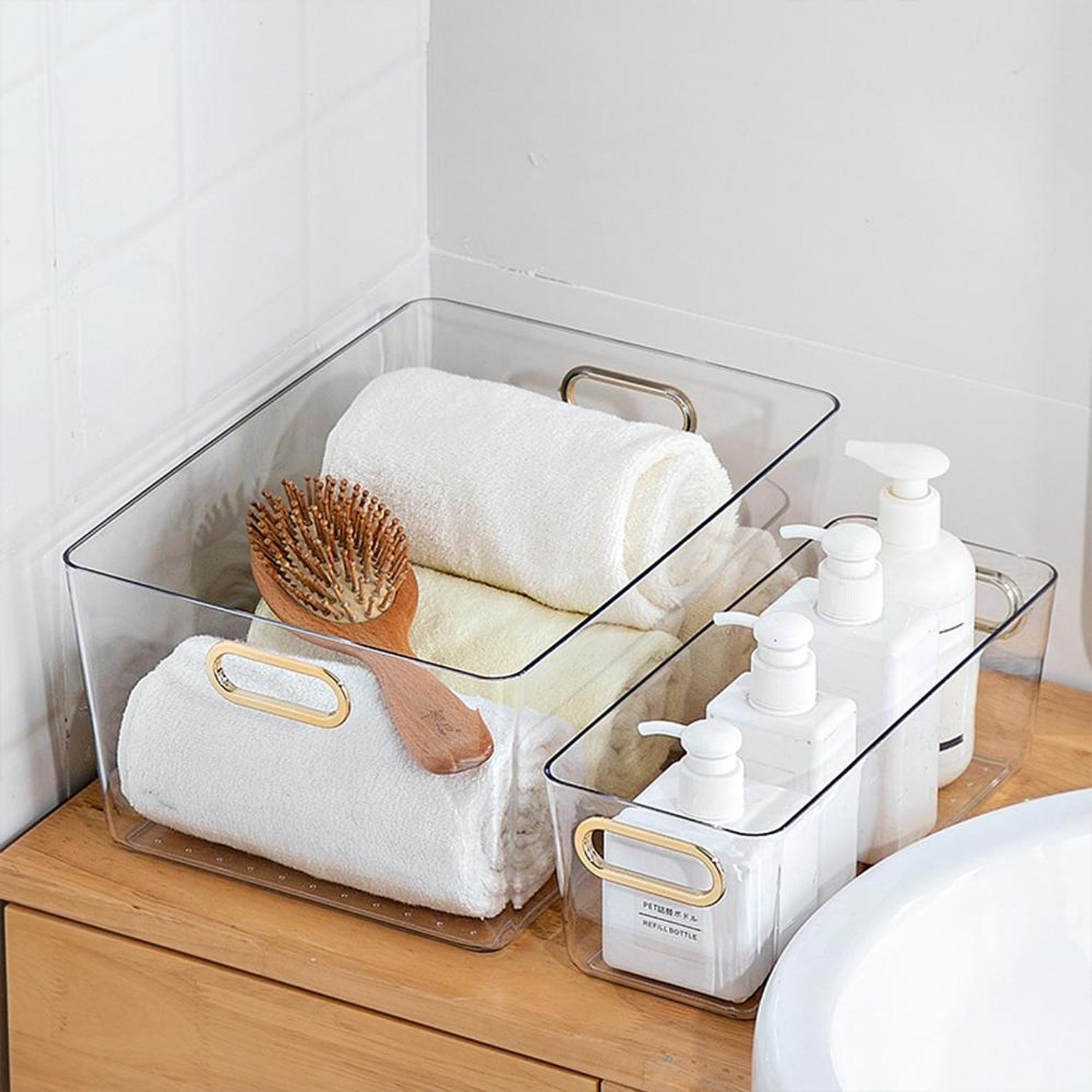 Elegant desktop storage boxes designed for organizing cosmetics, stationery, accessories, toiletries and more. Modern transparent design adds a clean, luxurious look to any space.