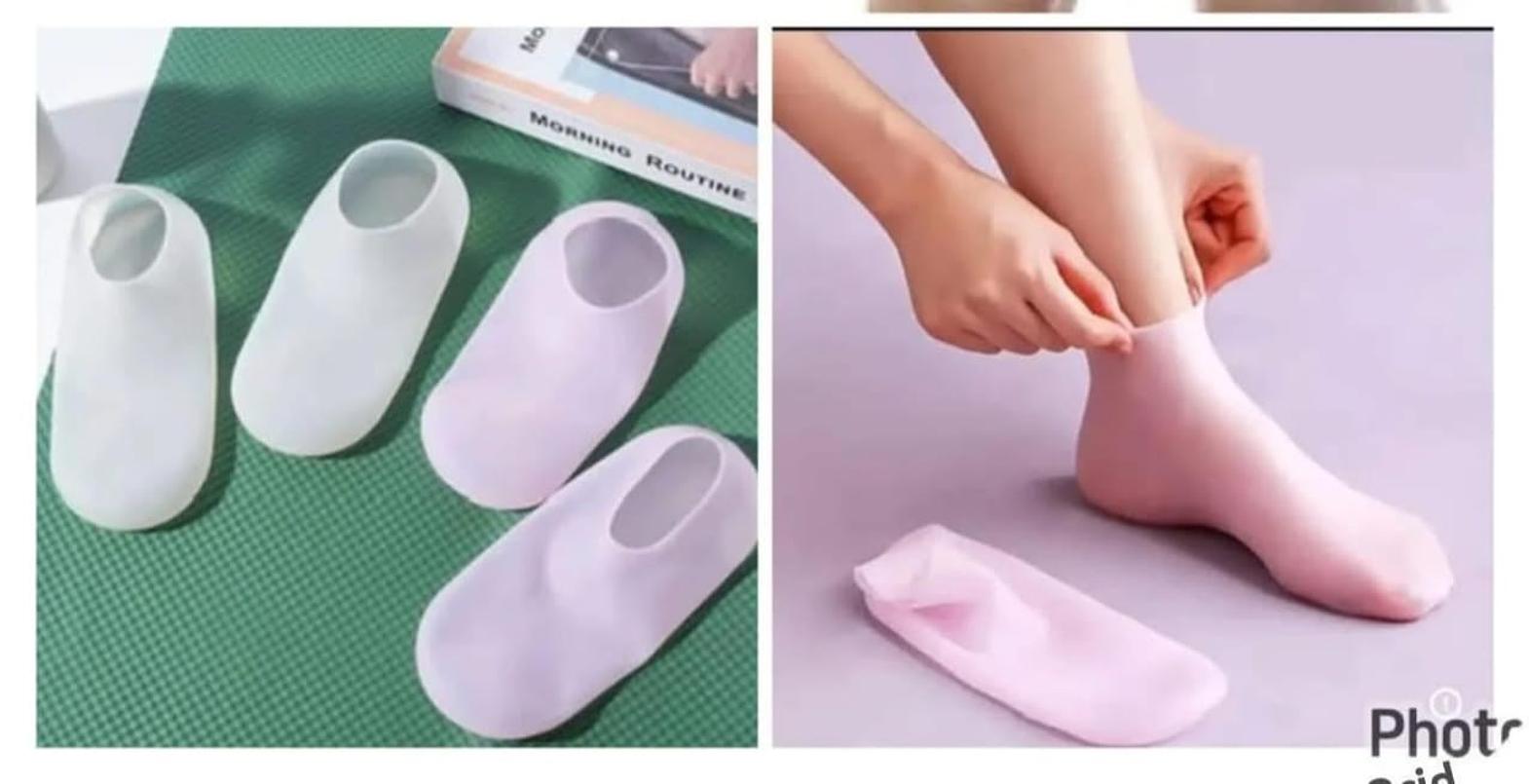 Stretchable silicone foot spa socks for moisturizing, anti-cracking and dead skin removal. Reusable.