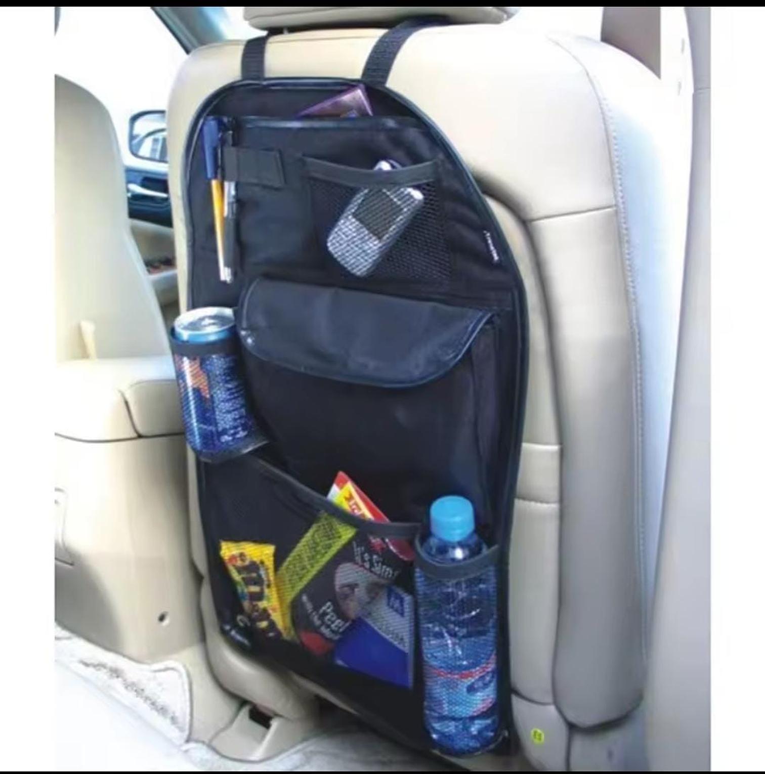 This multifunctional car seat storage bag is a practical solution to keep your vehicle organized. Designed to hang on the back of your car seat, it provides multiple compartments to store items such as tablets, water bottles, books, snacks, and other essentials.
