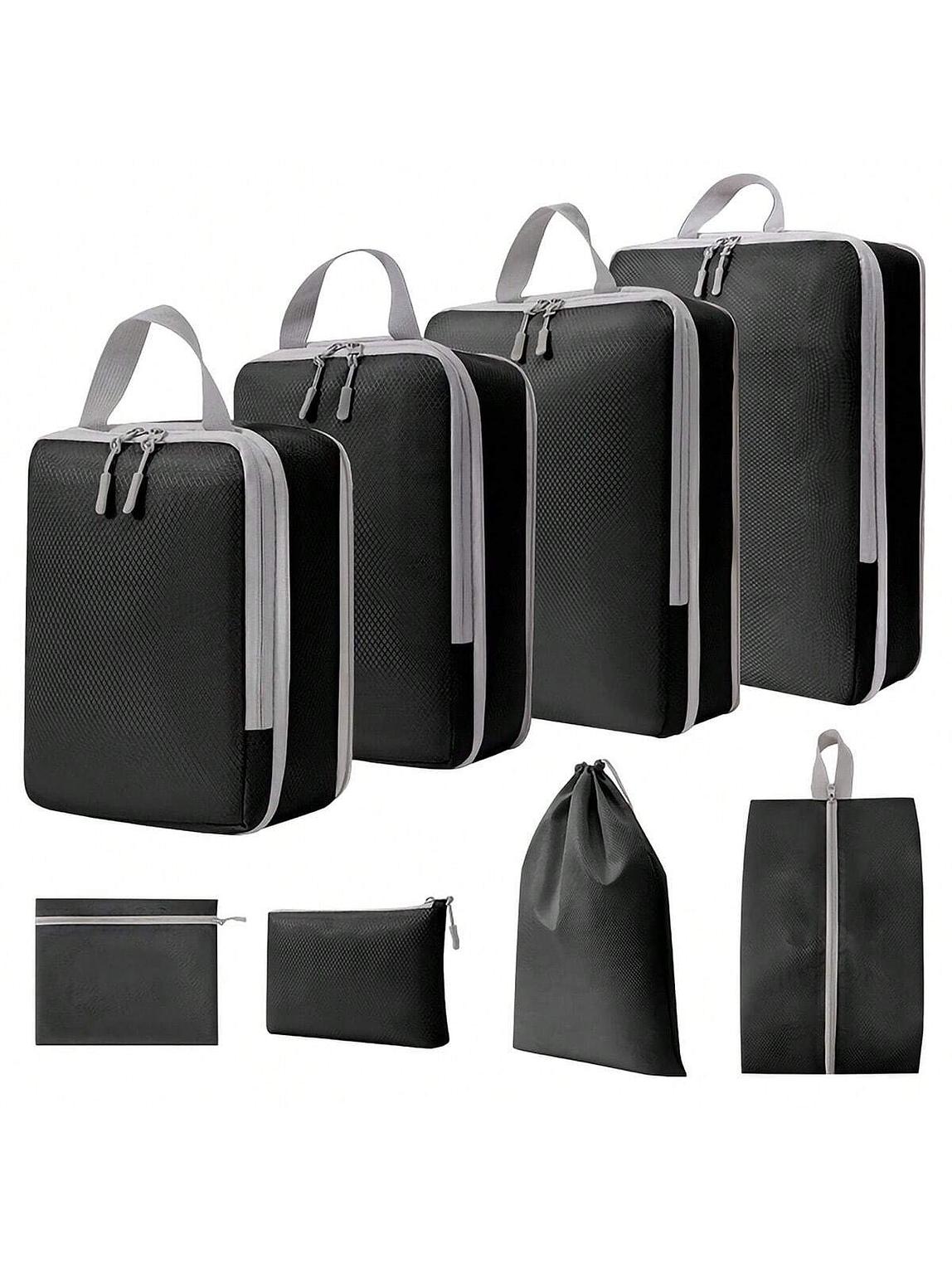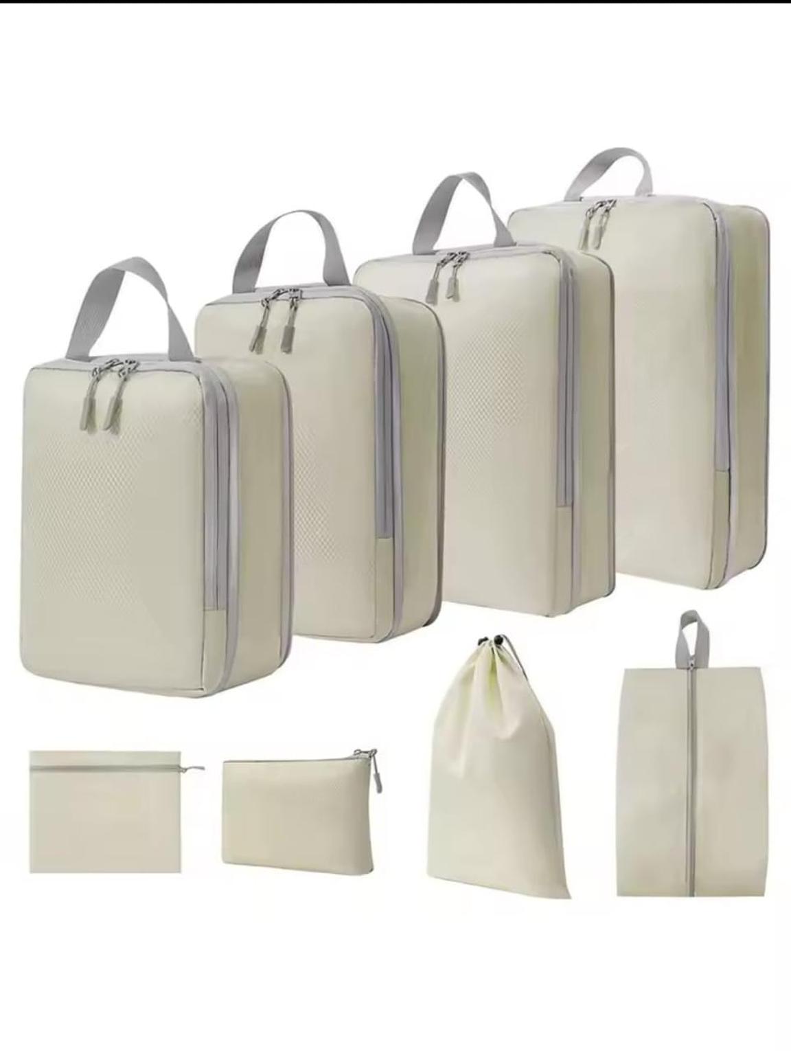 Travel smarter with this 8-piece compressible packing cube set. Made from waterproof nylon, these bags help organize clothes efficiently while saving suitcase space. Lightweight, durable and easy to carry with a handbag design, they’re perfect for travel, vacations and business trips.