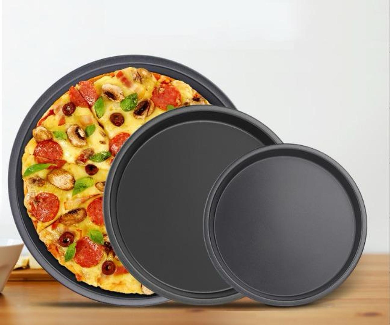 3pcs non-stick pizza pans set (6”, 8”, 10”).