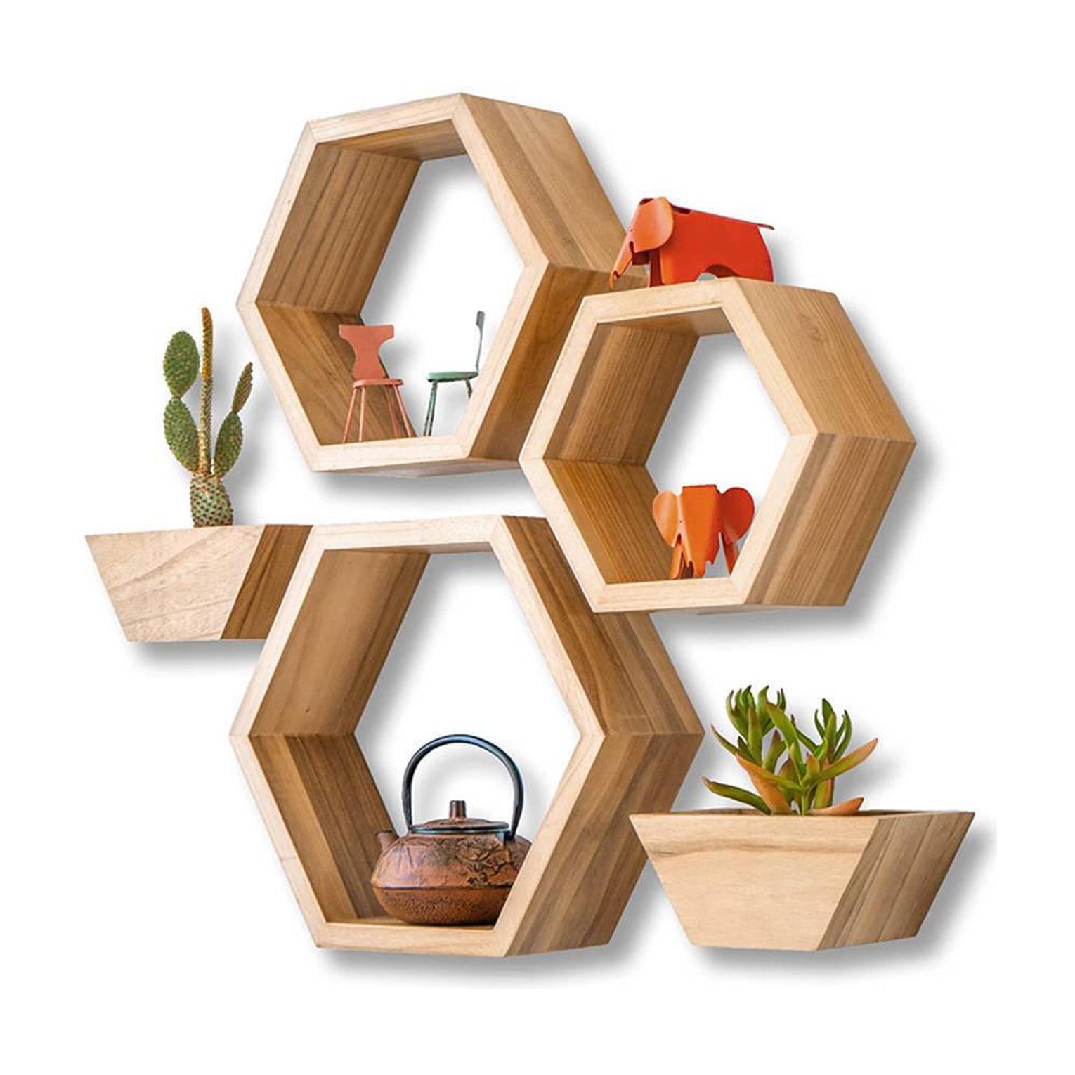 5-in-1 Wooden Floating Shelves (With Hooks)