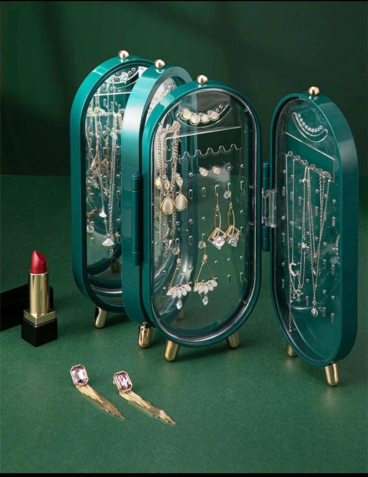 Unique foldable vintage-style jewelry display rack designed to organize and beautifully display necklaces, trinkets, and accessories while doubling as décor.