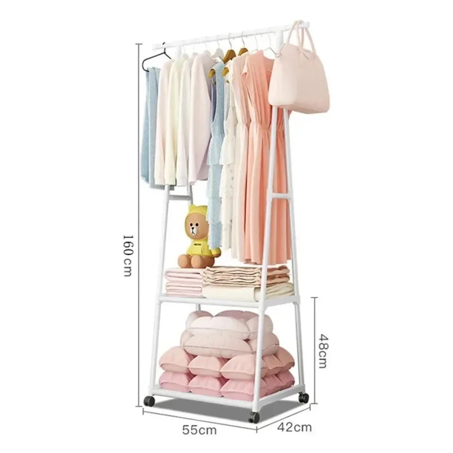 Equipped with smooth-rolling wheels, the rack is easy to move around, making it ideal for flexible use in bedrooms, bathrooms, laundry rooms, or entryways. Its sturdy construction ensures stability while holding multiple items, and the space-saving triangular shape fits neatly into corners. Practical, durable, and convenient, this coat rack helps keep your home organized and clutter-free.
