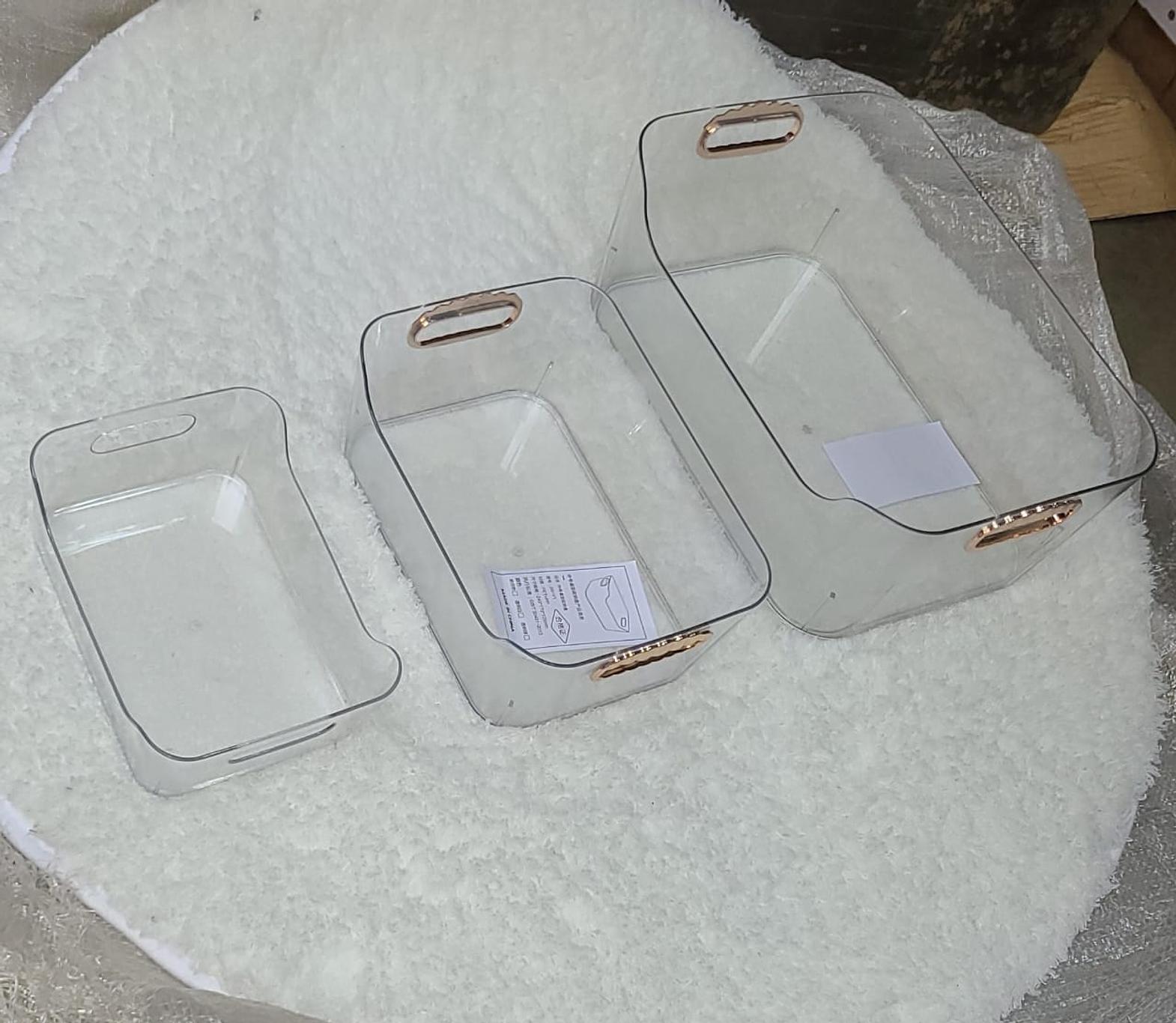 Elegant desktop storage boxes designed for organizing cosmetics, stationery, accessories, toiletries and more. Modern transparent design adds a clean, luxurious look to any space.
